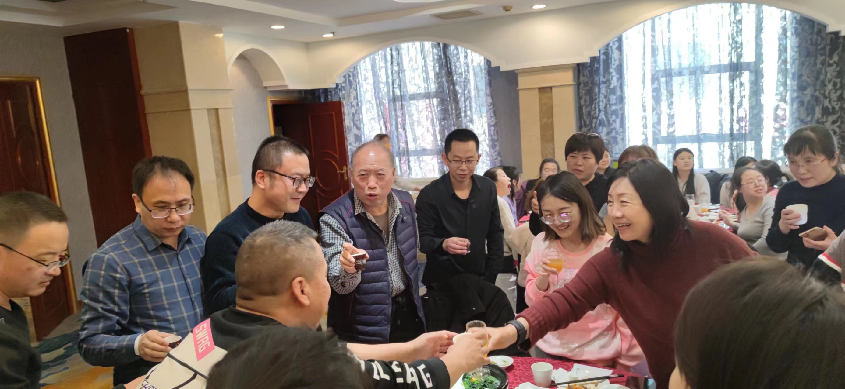 聚餐的過程中,在董事長陳雪琴的號(hào)召下,全體陳明人共同舉杯,慶祝這相聚的時(shí)刻,陳明人互相交談著,增進(jìn)了部門與部門之間,上級(jí)與下級(jí)之間的相互了解,增強(qiáng)了團(tuán)隊(duì)凝聚力,整個(gè)餐廳都彌漫著陳明集團(tuán)這個(gè)大家庭的暖意。